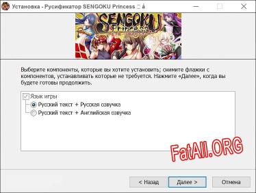 Приветствуем вас на страницах нашего сайта FatAll.org, где вы найдете все необходимые русификаторы для своих любимых игр! Здесь вы найдете качественный русификатор для SENGOKU Princess ~ 天下統一は姫武将と共に ~, который переведет игру на русский язык и поможет вам насладиться игрой на полную. Русификатор позволит вам перевести игру. Данный файл от автора с ником THETA.