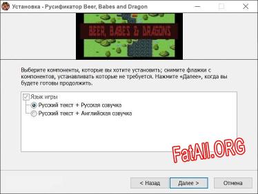 Добрый день! Мы рады приветствовать вас на нашем сайте FatAll.org, где вы найдете лучшие русификаторы для своих любимых игр! Наш русификатор для игры Beer, Babes and Dragons поможет вам насладиться игрой на своем родном языке. Мы предлагаем только качественный русификатор, который не нарушает работу игры. Здесь вы можете скачать русификатор для версии игры 1.0 и выше. Данный файл от автора с ником DTCG.