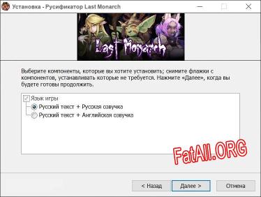 Добро пожаловать на FatAll.org! Наш русификатор обеспечит качественный перевод игры на русский язык и поможет вам получить удовольствие от игры Last Monarch на полную. У нас вы найдете только качественный русификатор, гарантирующий работу игры без сбоев. Русификатор позволит вам перевести игру. Доступен русификатор от BAKA!.